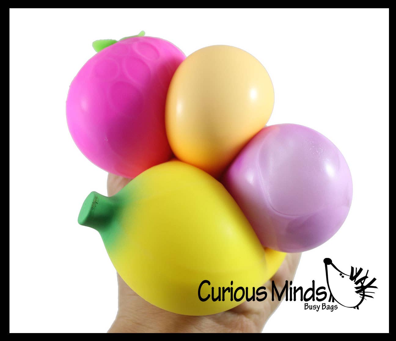 Squeeze a random fruit-shaped stress ball filled with soft, creamy doh that feels like fluffy frosting—available in banana, strawberry, orange, or grapes for instant sensory relief.