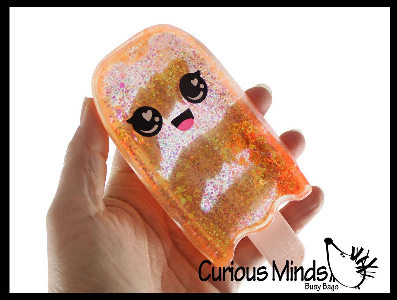 Stretch and squeeze this glittery popsicle squishy—it slowly oozes back to shape for endless fidget fun and stress relief.